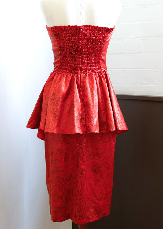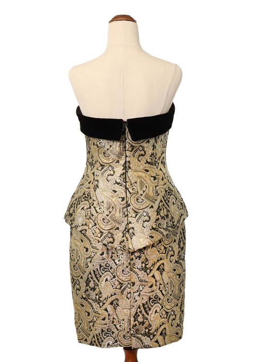 1990's After Five Gold & Black Brocade Strapless Tux Dress