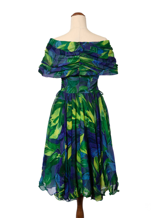 1990's Peter Weiss Floral Dress with Floral Bead Embellishment