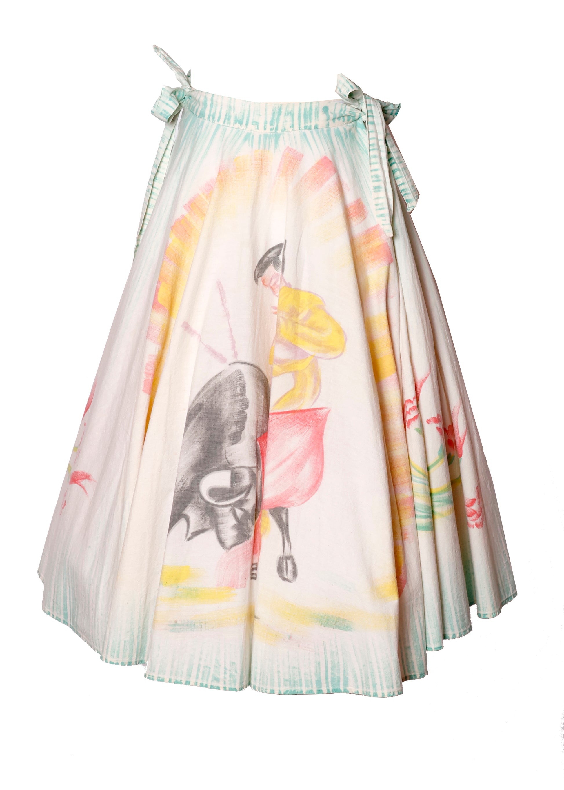 - Hand painted matador and bull fighting scene with florals and sunburst