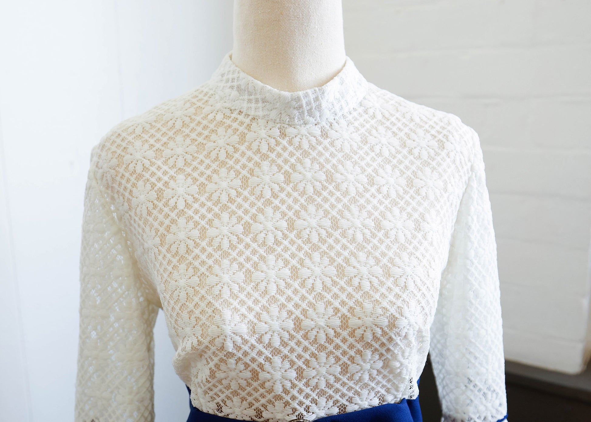 This free-spirited and whimsical piece from the 1970's exudes charm and femininity. The bodice is made of a daisy motif embroidered fabric, reminiscent of delicate lace and the high neck, frilled bell sleeves, complete with delicate trim detail, add a big punch of romance.