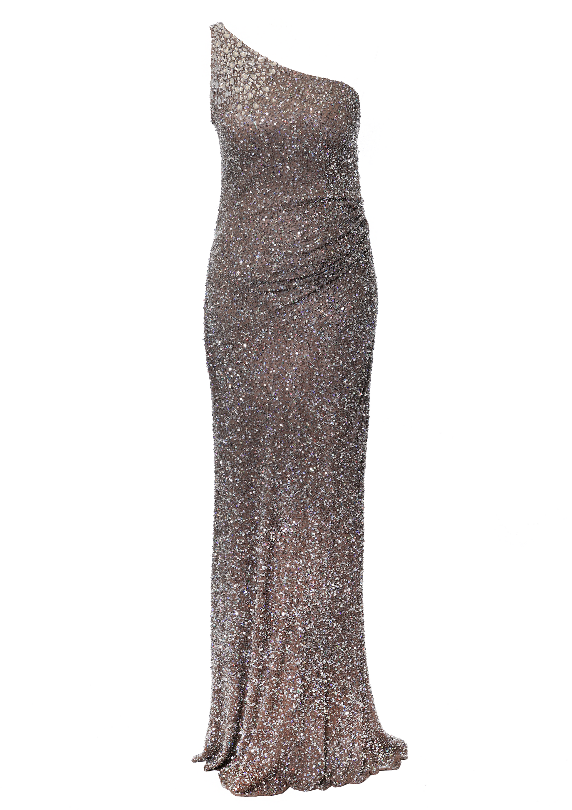 This stunning sequinned one shoulder gown is red carpet ready for any silver screen starlet!